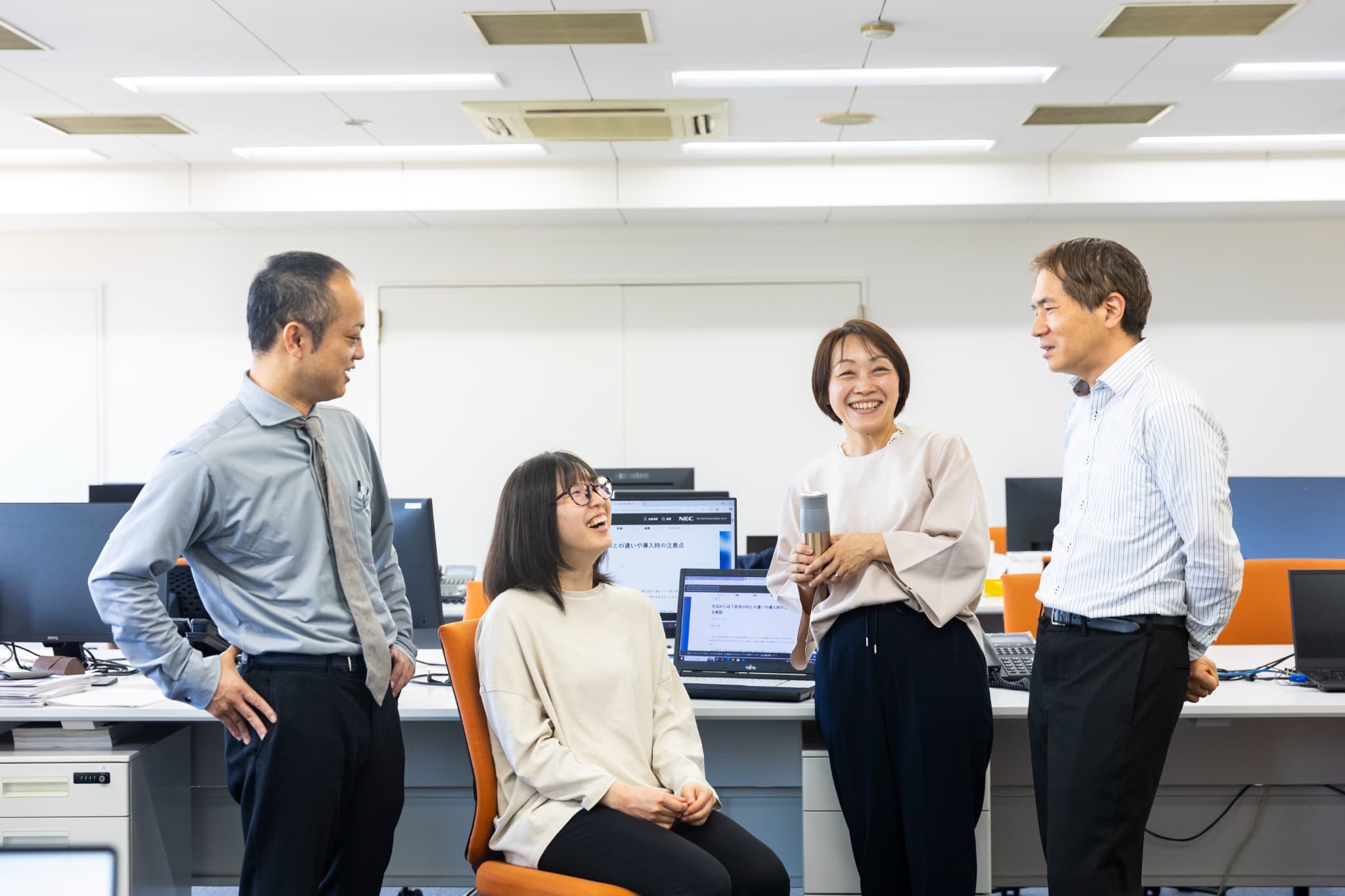 業務中は基本的に黙々と作業に当たっていますが、ブレイクタイムは和気あいあいとしていて、分からない事なども気軽に相談できる雰囲気です。